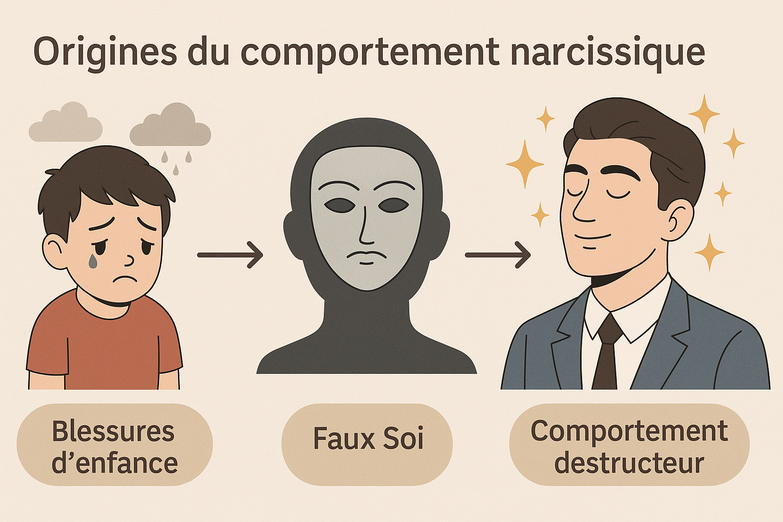 Comprendre les origines du pervers narcissique : blessures d’enfance et construction du faux soi