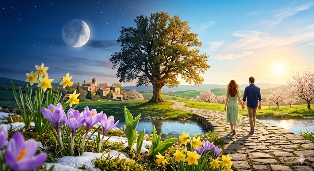 Spirituellement, cet équinoxe symbolise le « Point Zéro », un équilibre parfait entre l’ombre et la lumière. C’est un portail de renaissance qui marque le passage de l’introspection hivernale (l’Enfermement) à la manifestation concrète (la Naissance).